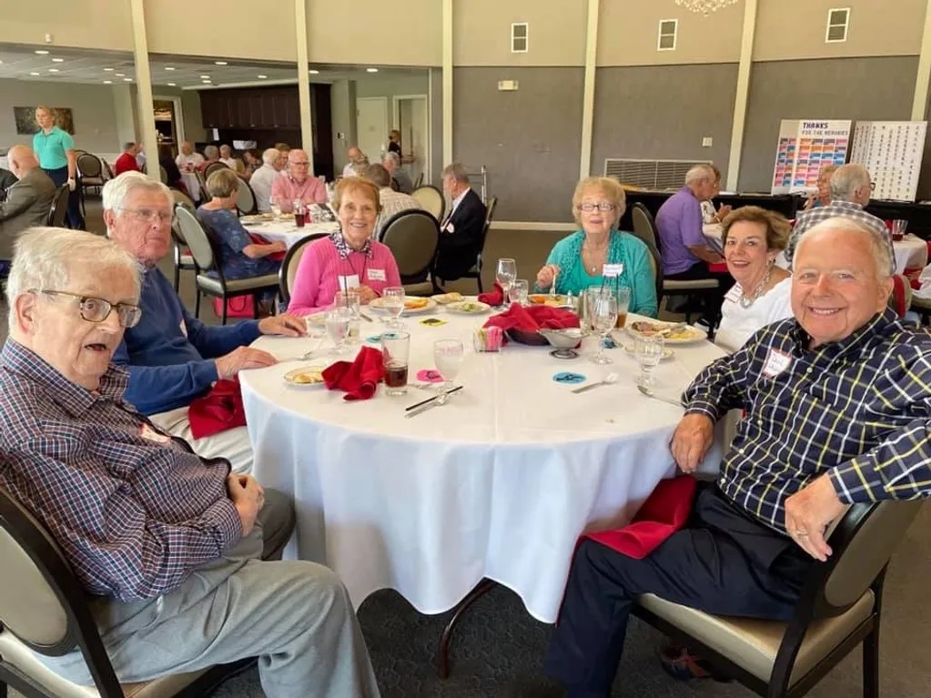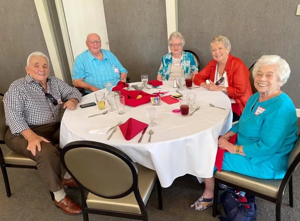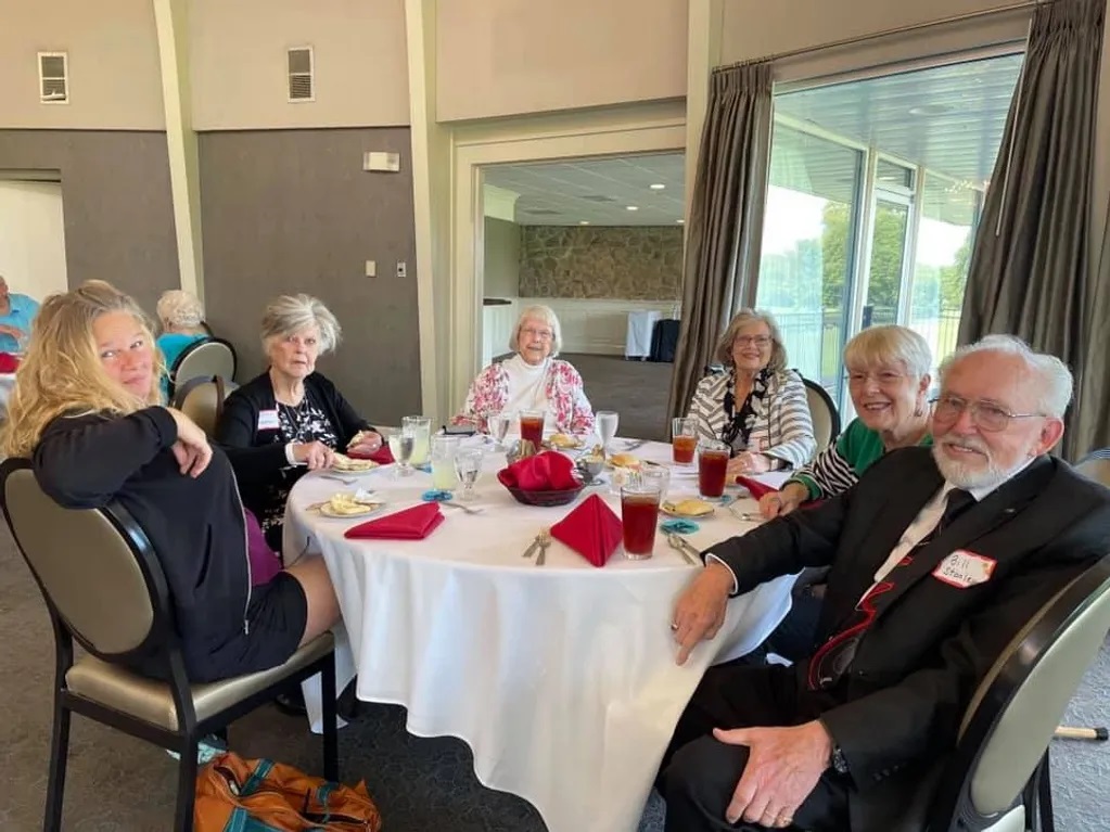 Ann Couch Peter, Marvin Peter, Gene Lutterbach, Anita Williamson Lutterbach, Annette Katz Weisfeld, Barbara Costello Victor, and Barbara's daughter
